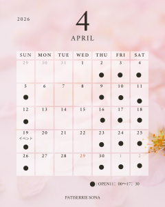 2026.4.2 営業日のご案内(4月) 新年度ですね。 春のご挨拶に沢山ご利用いただきありがとうございます。 お電話で結構ですので ギフトのご注文いただけますと ご予算にあわせて準備いたします。 よろしくお願いします。